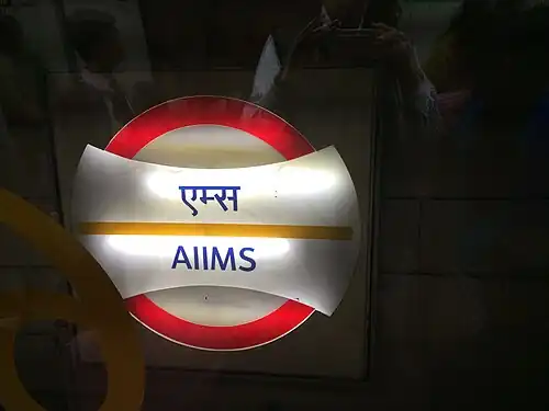 The AIIMS metro station is located on the Yellow Line of the Delhi Metro.[1]