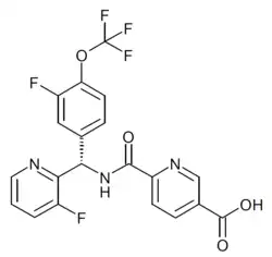- ^ Horne DB, Biswas K, Brown J, Bartberger MD, Clarine J, Davis CD, et al. (September 2018). "Discovery of TRPM8 Antagonist ( S)-6-(((3-Fluoro-4-(trifluoromethoxy)phenyl)(3-fluoropyridin-2-yl)methyl)carbamoyl)nicotinic Acid (AMG 333), a Clinical Candidate for the Treatment of Migraine". Journal of Medicinal Chemistry. 61 (18): 8186–8201. doi:10.1021/acs.jmedchem.8b00518. PMID 30148953. S2CID 52095823.