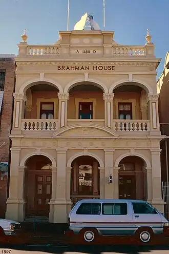 The AMP regional office continued in this East Street building until 1970 when the Society moved to new Rockhampton premises on the same street. The property was sold in 1972 to the Australian Brahman Breeders Association. This organisation had begun as the Australian Zebu Breeders' Society in 1946 in an effort to promote a breed of cattle more able to withstand the effects of north Australia's cattle ticks and droughts than traditional British breeds. They continue to occupy the building on East Street.[1]