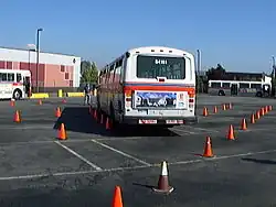 The International Bus Roadeo is an annual bus driving and bus maintenance competition, or roadeo, hosted by the American Public Transportation Association.[1] A grand prize is given to the bus transit system with the highest composite bus operation and bus maintenance score.[2] The bus driving competition consists of an obstacle course.[3] For the bus maintenance competition, teams of mechanics must locate and fix defects in a number of bus power trains and other systems.