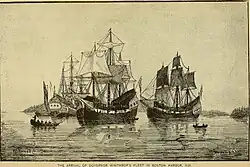 Historically, "A Model of Christian Charity" has been attributed to Puritan leader John Winthrop.[3] Francis Bayard Winthrop donated a manuscript titled "A Modell of Christian Charity" to the New-York Historical Society in 1809.[4] According to a headnote written by Bayard Winthrop, the text was written "[o]n Boarde the Arrabella", "On the Attlantick ! Ocean!", and "[b]y the Honrble John Winthrop. Esqr."[5] However, the text includes a note from its scrivener describing the sermon as having been given "heere in England", rather than aboard the Arbella at sea.[6]