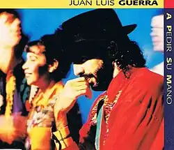 A Pedir Su Mano (English: Ask her hand) is a song by Dominican Republic singer-songwriter Juan Luis Guerra released as the fourth single for his album Bachata Rosa (1990). It was released in 1990 by Karem Records and in 1992 on Europe by Ariola.[1] The track is a merengue version of the song “Dede Priscilla,” by Lea Lignanzi from the Central African Republic. The track combined music elements of Afropop and zouk with merengue.[2][3] The music video shows people in traditional African dress dancing in sugarcane fields with a cartoon of a red train traversing the landscape.[4]