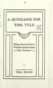 A Quinzaine for this Yule (or A Quinzaine for this Yule: Being Selected from a Venetian Sketch-book "San Trovaso.") is a collection of poetry by Ezra Pound.