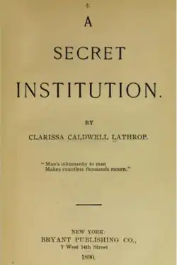 3. ^ Lathrop, Clarissa Caldwell (1890). "A secret institution". New York: Bryant Publishing Co. Retrieved 11 September 2017.