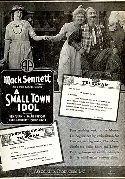 A Small Town Idol is a 1921 American silent feature comedy film produced by Mack Sennett and released through Associated First National. The film stars Ben Turpin and was made and acted by many of the same Sennett personnel from his previous year's Down on the Farm. Sennett and Erle C. Kenton directed.[1][2]