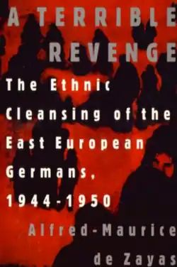 A Terrible Revenge: The Ethnic Cleansing of the East European Germans, 1944–1950 is a 1994 non-fiction book written by Cuban-born American lawyer Alfred-Maurice de Zayas, former research fellow at MPG in Heidelberg, Germany. The work is based on a collection of testimonials from German civilians and Wehrmacht military personnel; and devoted to the expulsion of Germans after World War II from states previously occupied by Nazi Germany.[1] It includes as well selected interviews with British and American politicians who participated at the Potsdam Conference, including Robert Murphy, Geoffrey Harrison (drafter of article XIII of the Potsdam Protocol), and Denis Allen (drafter of article IX on the provisional post-war borders). The book attempts to describe the crimes committed against the German nation by the Soviet Union, Poland, Czechoslovakia, Hungary and Yugoslavia at the end of World War II – as perceived by the expellees themselves and settlers brought in Heim ins Reich (Home into the Empire) from the east.[2]