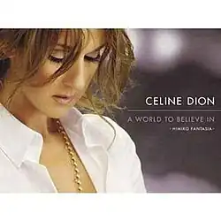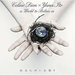 "A World to Believe In" (Japanese: あなたがいる限り, Hepburn: Anata ga Iru Kagiri; "As Long as You are with Me")[1] is a song recorded by Canadian singer Celine Dion, taken from her tenth English-language studio album, Taking Chances (2007). It was written by Tino Izzo and Rosanna Ciciola, and produced by the Grammy-winning producer, John Shanks. Re-recorded as a duet with the Japanese singer Yuna Ito, it was released as the second single in Japan from Taking Chances on 16 January 2008, and also as the lead single from Dion's Japanese greatest hits album, Complete Best (2008).[2][3] The duet version was also included on Ito's album, Wish (2008). The song reached number three on the Billboard Japan Hot 100 and number eight on the Oricon Singles Chart.