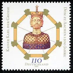 Following Charlemagne's canonization by Antipope Paschal III in 1165, the chapel became a draw for pilgrims.[1] Due to the enormous flow of pilgrims, in 1355 a Gothic choir hall was added,[3] and a two-part Capella vitrea (glass chapel) was consecrated on the 600th anniversary of Charlemagne's death.[1] A cupola, several other chapels, and a steeple were also constructed at later dates. It was restored again in 1881,[9] when the Baroque stucco was removed.[4]
