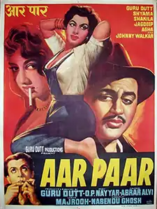 Aar Paar (transl. This or That) is a 1954 Indian Hindi-language noir comedy film. Directed by Guru Dutt, it has music by O.P. Nayyar and lyrics by Majrooh Sultanpuri. Aar-Paar stars Johnny Walker, Shyama, Shakila, Jagdeep, Jagdish Sethi. Raj Khosla and Atma Ram, Guru Dutt's brother assisted Guru Dutt in film direction.[1]