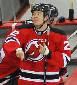 Asham playing for the New Jersey Devils during the 2007–08 season.
