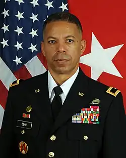 Aaron R. Dean II (born May 20, 1964)[2] is a retired United States Army brigadier general (BG) and the former adjutant general[3] (TAG) of the District of Columbia National Guard[4][5] (DCNG). As the TAG for the DCNG, Dean[6][7] was responsible for providing personnel support to both Army and Air National Guard components. Dean acted as the auxiliary support to the commanding general of the DCNG, while concurrently carrying out many responsibilities associated with the District of Columbia's constitution and directives. In addition to this, he was responsible for managing the assets of the entire DCNG.