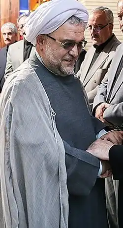 Hojjatoleslam Abbas Amirifar (born 1957) is the prayer leader of Iranian president Mahmoud Ahmadinejad and head of the presidential cultural committee.[1] He was arrested in May 2011 on charges of "sorcery", after he produced a controversial film predicting the imminent return of the Mahdi,[2] (the title of which—Zohur Besyar Nazdik Ast[3]—has been translated as "Appearance is Close!"[4]). According to Radio Zamaneh, he was "referred to the Special Court for the Clergy for his involvement in the production and distribution" of the film, as well as for "disturbing public minds and insulting political groups and figures."[4] The arrest is thought to be part of a dispute between the president and other conservatives, including the supreme leader.[2] "At least 25" supporters of Ahmadinejad have been arrested in 2011,[5] including Mohammed Sharif Malekzadeh and Kazem Kiapasha.[6][7]