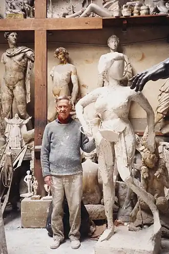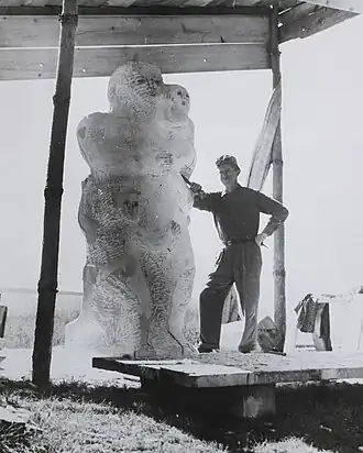 ![]() In studio, carving Wingless Victory in Chicago, Illinois, 1950. | |