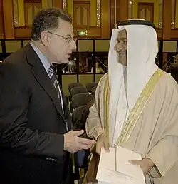 ![]() Abdulla Hassan Saif (right) meeting with Lebanese Finance Minister Fuad Siniora in 2003 | |