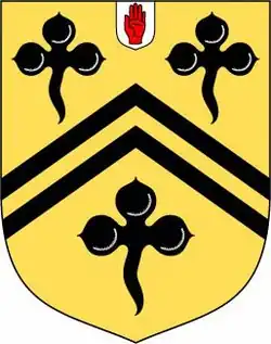| Arms | or, two chevronnels between three trefoils slipped sable[2] |