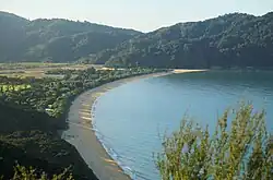 At Torrent Bay, the track crosses the first of three estuaries. The Torrent Bay estuary can either be crossed within 2 hours either side of low tide, or rounded by an alternative high tide track through the bush around the bay, lengthening the distance by 3 km.[6] The 8.4 km section between Anchorage Bay and Bark Bay leads largely inland through coastal forest, but the terrain of the valleys it crosses remains gentle.