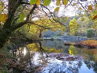 As recently as the early 19th century, the river Glaslyn was navigable for small boats at high tide as far as Pont Aberglaslyn, which is just one mile (1.6 km) south of Beddgelert, where a sixth-century monastery was succeeded in the twelfth by an Augustinian priory. In the Middle Ages Beddgelert was seen as a safe resting place before travelling further. The route from the coast via Beddgelert and overland to Caernarfon or Bangor via Llyn Cwellyn was often considered preferable to the long voyage round the Llŷn Peninsula. [1]