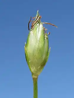 Abildgaardia ovata are perennial plants that grow up to 40–70 cm (16–28 in) long.[4][5] It is common to find species with one spikelet at the tip of its scapes but can reach up to three spikelets that are laterally compressed and of length between 7–12 mm (0.28–0.47 in).[4][3] A short rhizome with hardened and leafy bas, it grows in wooded and wet grasslands and as a weed in Asia and in Florida.[6]