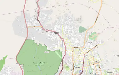 Abobo is a northern suburb of Abidjan and one of the 10 urban communes of this city in Ivory Coast. Abobo is one of the most populated communes in the country with about 1.3 million inhabitants in an area of 6,925 ha (69.25 km2), a density of 193 inhabitants per hectare. Many of the residents are Muslim settlers from the north of the country.[2]