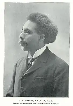 Abraham Beverley Walker ONB (23 August 1851 – 21 April 1909)[1] was a New Brunswick-born lawyer and journalist. He was the first Canadian-born Black lawyer in New Brunswick, and the first black lawyer born in what is now Canada (Robert Sutherland having been born in Jamaica; when Walker was born, New Brunswick was part of British North America but Canada at the time only covered parts of modern Quebec and Ontario).[2] He was posthumously awarded the Order of New Brunswick in 2019.