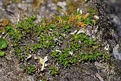 Abrotanella muscosa is a member of the daisy family and is found on Stewart Island, New Zealand.[3]