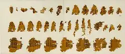 The fragmented papyri are written in columns divided into three horizontal registers.[6][7]