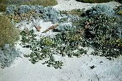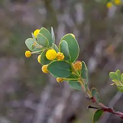 This wattle is endemic to an area along the south coast of southern Australia, where it grows in coastal dune vegetation or open scrub from the Middle Island of the Recherche Archipelago in Western Australia to the Eyre and Yorke Peninsulas in South Australia.[3][4][5][6]