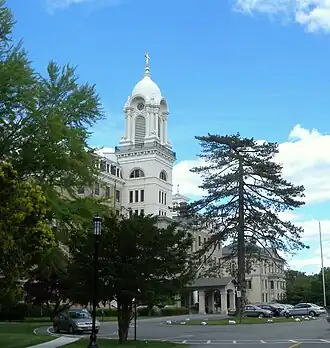 When the religious order founded the academy, they moved their motherhouse and convent from Newark onto a parcel that was located on the developing "Millionaires Row" that stretched from Loantaka Parkway to the center of Morristown, described as the "inland Newport" because of the numerous wealthy families who built grand homes along the route.[10] In 1865, Morristown changed its incorporation to the new "town" category with a boundary that then excluded their large land holdings. Thirty years later, that boundary line officially delineated two governmental jurisdictions in 1895 when Morristown was formally set off from the rest of Morris Township.