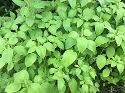 The hophornbeam copperleaf is a summer weed growing in cultivated fields and waste places. It has a high germination rate and the seedlings are resistant to cold and grow as fast as soybean plants in the Midwest. It is resistant to most of the herbicides used in soybean crops with the exception of lactofen, acifluorfen and fomesafen, which controlled over 80%. Lactofen was the most successful of these with a kill rate of 95%.[14]