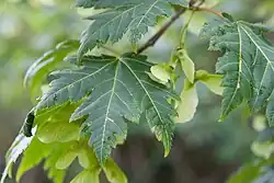 Acer tschonoskii (in Japanese ミネカエデ, Mine-kaede, literally "ridge maple"), the butterfly maple or Tschonoski's maple, is a species of shrub or small tree native to Japan and the Kuril Islands.[2][3] It is one of the least invasive, easiest to grow, and hardiest species of maples, but remains rarely used in gardens.[3] A. tschonoskii naturally grows in subalpine habitats, at elevations between 1,400–2,500 m (4,600–8,200 ft).[3] A. tschonoskii var. australe,[4] (in Japanese ナンゴクミネカエデ, Nangoku-mine-kaede, literally "southern Tschonoski's maple"), a variety of A. tschonoskii, is distributed from Iwate Prefecture southward to Shikoku and Kyushu.[5]