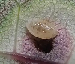 | Larva (top) and Leaf gall caused by Acericecis ocellaris (bottom) | |