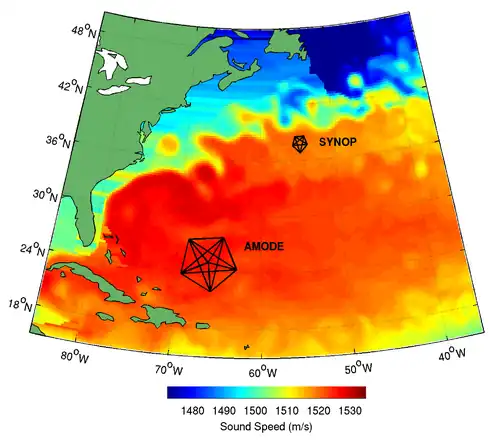 - ^ Munk, W.H.; O'Reilly, W.C.; Reid, J.L. (1988). "Australia-Bermuda Sound Transmission Experiment (1960) Revisited". Journal of Physical Oceanography. 18 (12): 1876–1998. Bibcode:1988JPO....18.1876M. doi:10.1175/1520-0485(1988)018<1876:ABSTER>2.0.CO;2.