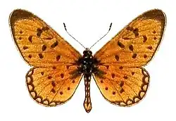 - f. gracilis Wichgr. [now forma of Acraea violarum] only differs in having the marginal band of the hindwing narrow, 1 mm. in breadth. Mashonaland.[4]
