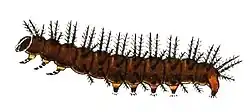 | Male (6., 7.) and female (8.) imagos in H. Dewitz (1889), and the larva of form lamborni illustrated in Eltringham (1912) | |