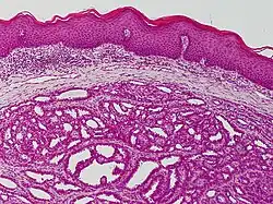 - ^ a b c Sawaya JL, Khachemoune A (September 2014). "Poroma: a review of eccrine, apocrine, and malignant forms". International Journal of Dermatology. 53 (9): 1053–61. doi:10.1111/ijd.12448. PMID 24697501.