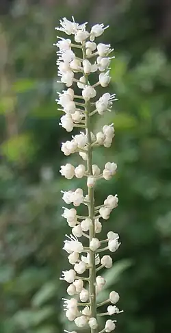 Growing to 1.2 metres (3.9 ft) tall by 0.6 metres (2.0 ft) wide,[4] it has trifoliate and pinnate basal leaves. In summer it produces erect or arching stems with short terminal racemes of fragrant white blooms. It grows best in medium-moisture soils and part shade to full shade. In the US, it is suitable for hardiness zones 4 to 8.[5] It is important not to let the plants dry out in hot, sunny situations.[6]