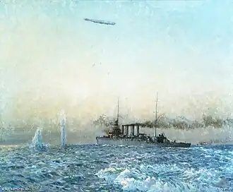 ![]() A painting of the engagement between Australian light cruiser HMAS Sydney and German Zeppelin LZ43 in the North Sea on 4 May 1917. | |||||||