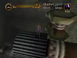 Currency, in the form of moneybags, can be used to purchase items that are not dropped by enemies or found hidden in the environments. The heroes may also need to battle Renon, the demon salesman, should they spend too much.[3] An inventory on the pause screen displays items, such as health-restoring meat, restorative ampoules, keys, etc.