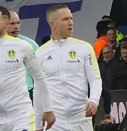 On 18 January 2018, Forshaw transferred to Championship club Leeds United for a reported £4.5 million fee and signed a four-and-a-half-year contract.[55][56] Forshaw made his Leeds debut starting in Leeds' 0–0 draw against Hull City on 30 January 2018.[57] After starting for the side since his debut, on 24 February Forshaw missed Leeds' 1–0 win against his former side Brentford with his wife going into labour.[58] He aggravated a previous calf injury against Sheffield Wednesday on 17 March, which limited his number of performances before the end of the season.[59] During the 2018 preseason, Forshaw sustained a toe injury which on 3 August was reported to require surgery and keep him out for up to eight weeks.[60] He returned from injury on 15 September, as a substitute in the 1–1 draw against Millwall.[61] Forshaw was praised for his performance in a newer role as defensive midfielder in a 2–0 win against Derby County on 11 January 2019, with Yorkshire Evening Post journalist Phil Hay describing it as "arguably his best for Leeds".[62][63]