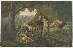 On 11 January 1865, he received a deputation asking him to stand for parliament and was elected by three votes to the South Australian House of Assembly on 16 March 1865 for the district of Victoria.[8] In politics, Gordon was a maverick. His semiclassical speeches were colourful and entertaining, but largely irrelevant, and he resigned his seat on 10 November 1866.[9] He found a good friend in wealthy fellow parliamentarian John Riddoch of Penola, and was a frequent guest at his grand residence "Yallum". There he wrote "The Sick Stockrider".[10]