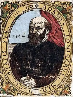 Adam Lonicer, Adam Lonitzer or Adamus Lonicerus (10 October 1528 – 29 May 1586) was a German botanist, noted for his 1557 revised version of Eucharius Rösslin's herbal.
