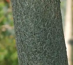 Leaves are palmately compound, typically with 9 to 11 leaflets. This is the only species of baobab with leaflets that are blueish-green and that are densely covered with star-shaped hairs.[5]