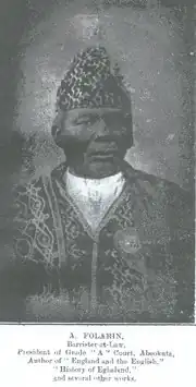 - ^ a b Folarin, Adebesin (1913). England and the English: Personal Impressions during a Three Years' Sojourn. John Taylor. p. 43.