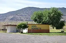 Adel is 4,547 feet (1,386 m) above sea level.[1] To the northeast, the Hart Mountain ridge rises to 8,017 feet (2,444 m).[2]