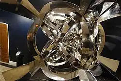 The artwork was designed by Adrian Ocneanu, a Penn State mathematics professor. He supplied the specifications for the sculpture's 96 triangular pieces of stainless steel and for their assembly. Fabrication was done by Penn State's machine shop, led by Jerry Anderson. The work took over a year, involving bending and welding as well as cutting. Discussing the construction, Ocneanu said:[1]