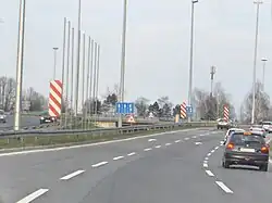 Jadranska Avenue (Croatian: Jadranska avenija, literally: Adriatic Avenue) is a mostly six-lane controlled-access avenue in the Novi Zagreb – zapad city district of southwestern Zagreb, Croatia. Legally designated as a part of County road Ž1040, it runs between the Remetinec Roundabout and the Zagreb bypass, acting as an important thoroughfare both for commuters from southwestern suburbs of Lučko and Stupnik and for travellers coming to the city by A1 motorway.[2] The avenue experiences high amounts of seasonal traffic in summer resulting in traffic jams sometimes spanning the whole length of the avenue. The daily traffic has also been rising in recent years due to former bedroom communities in Zagreb County from the 1990s becoming new outer suburbs in the 2000s. Novi Zagreb neighborhoods Blato, Botinec and Lanište are located directly south of the avenue. The intersection with Lanište Road was recently converted into an interchange.[3]
