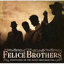Adventures of The Felice Brothers Vol. 1 is available directly from The Felice Brothers at live shows. It was recorded on two-track tape in a chicken coop, "People seem to think that’s weird, but it was normal to us," Felice said. "It was like a little tiny dirty house".[1] This album features "Frankie's Gun!", perhaps their most widely recognized song. Adventures of The Felice Brothers Vol. 1 was listed as number 3 on WDST's Top 25 Albums of 2007, being beat only by Bruce Springsteen and Levon Helm. Adventures also contains their covers of two classic folk songs. A song called Ruby Mae is also based on their grandpa's "old sweetheart" as the brothers say.[2] "Where'd You Get the Liquor" is a version of "Old Dan Tucker" and "Glory Glory" is a rendition of "Since I Laid My Burden Down".