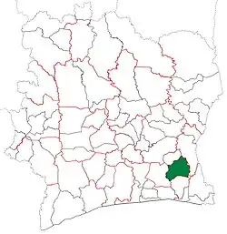 In 2005, Adzopé Department was divided in order to create Akoupé Department.[3] What remained of Adzopé Department was divided again in 2008 with the split-off creation of Yakassé-Attobrou Department.[3][4]