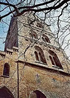 The St.-Aegidien-Kirche or Aegidienkirche is a church building in the north German city of Lübeck, dedicated to saint Giles. It is the smallest and easternmost church in the city centre. It is first mentioned as dedicated to St Giles in 1227; this is unusual for a north German and may link it to an earlier 1172–1182 wooden church built under bishop Henry I, formerly the abbot of the abbey dedicated to the same saint in Braunschweig. The church's coat of arms includes a "T", short for "Tilgenkark", the Low German form of the church's name, and "St Tilgen" or "St. Illigen", the Low German forms of the saint's name.[1]
