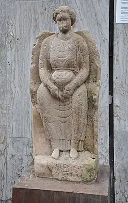 Erecura or Aerecura /ɛrɛˈkʊrə/ (also found as Herecura or Eracura)[1] was a goddess worshipped in ancient times, often thought to be Celtic in origin, mostly represented with the attributes of Proserpina and associated with the Roman underworld god Dis Pater, as on an altar from Sulzbach.[2] She appears with Dis Pater in a statue found at Oberseebach, Switzerland, and in several magical texts from Austria, once in the company of Cerberus and once probably with Ogmios.[3] A further inscription to her has been found near Stuttgart, Germany. Besides her chthonic symbols, she is often depicted with such attributes of fertility as the cornucopia and apple baskets.[4] She is believed to be similar to Greek Hecate, while the two goddesses share similar names.[5] She is depicted in a seated posture, wearing a full robe and bearing trays or baskets of fruit, in depictions from Cannstatt[6] and Sulzbach.[2] Miranda Green calls Aericura a "Gaulish Hecuba",[7] while Noémie Beck characterizes her as a "land-goddess" sharing both underworld and fertility aspects with Dis Pater.[8]